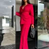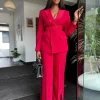 LADYDELUXE: V-neck Suit with Wide Leg Trouser