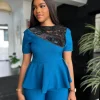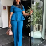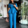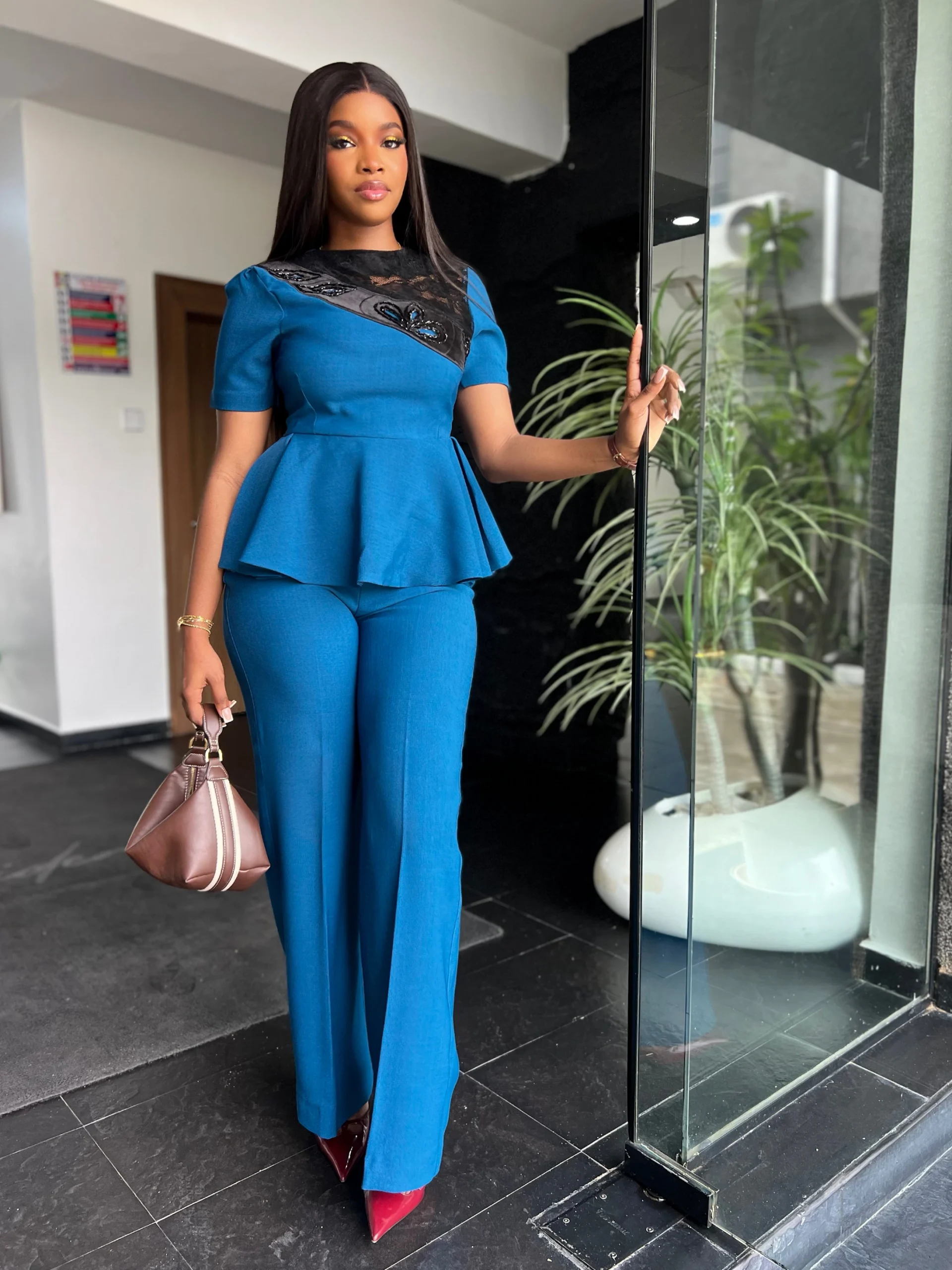 LADYDELUXE: Beaded Peplum Top x Wide Leg Trouser