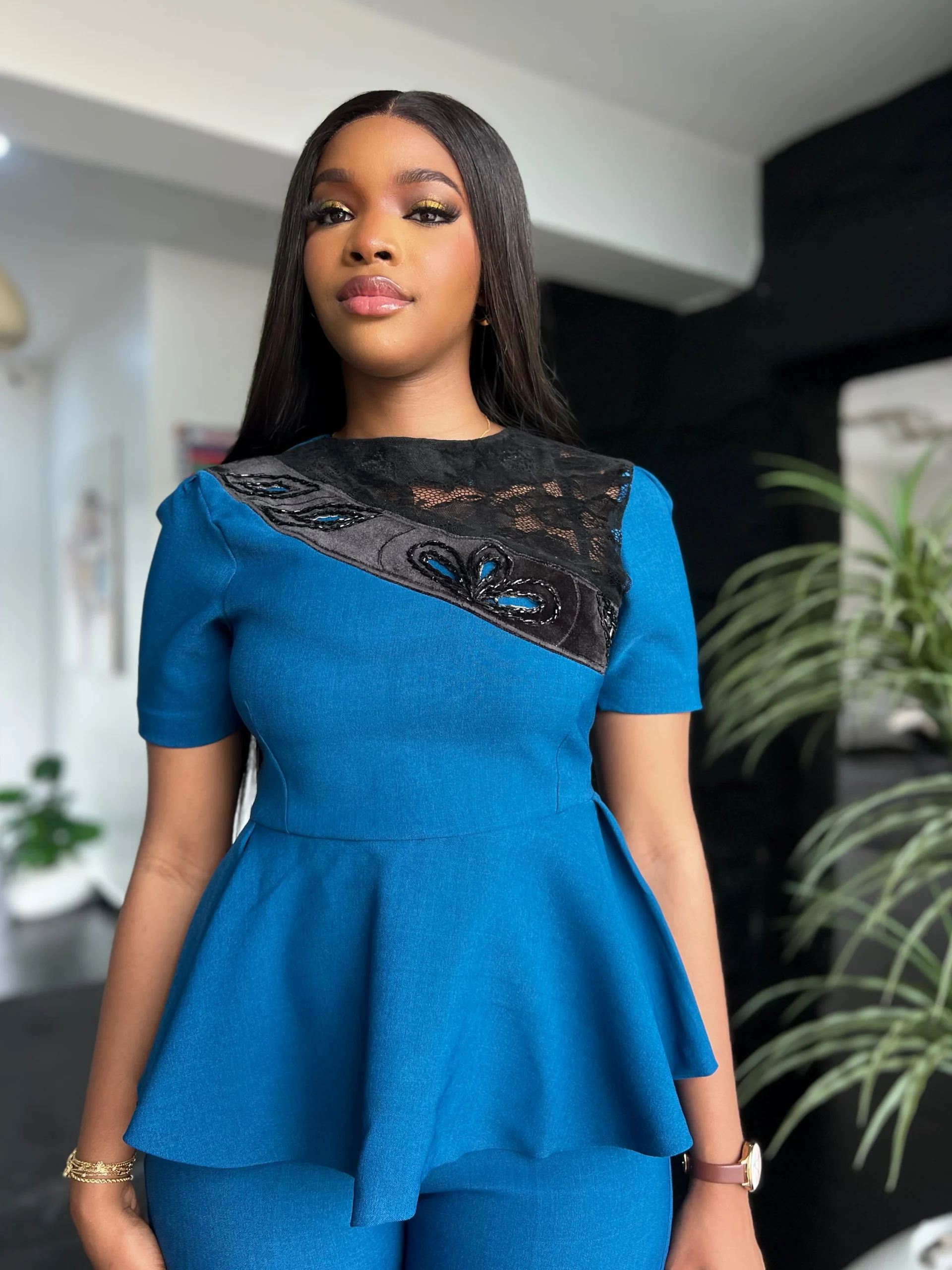 A well Detailed outfit that was Consciously & Carefully Designed for our Ladydeluxe to stand out at work .